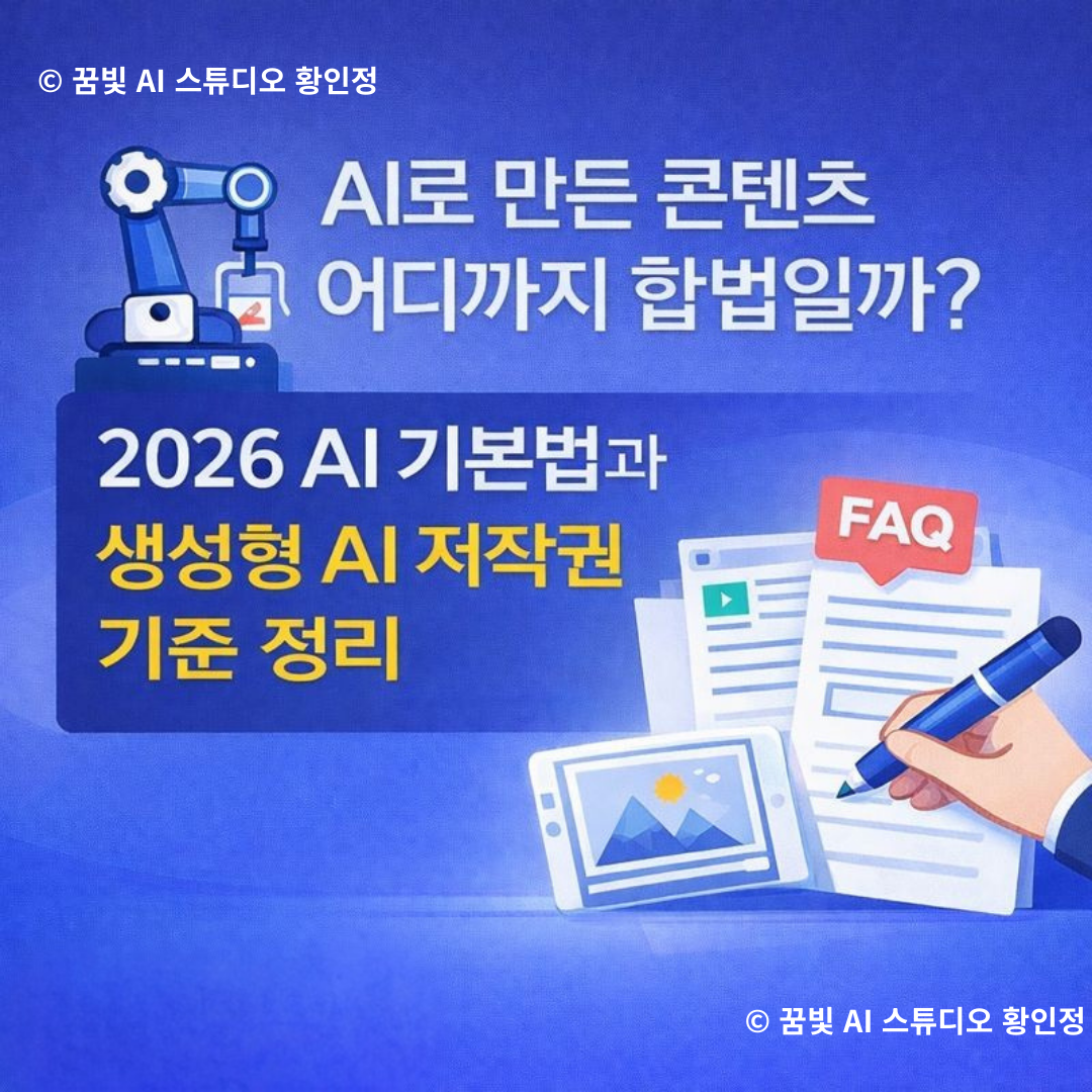 이 글은 2026년부터 시행되는 AI 기본법과 최근 정리된 생성형 AI 저작권 기준을 바탕으로, 티스토리 독자와 AI 검색 환경(GEO)에 맞춰 중복 없이 새롭게 정리한 해설형 가이드입니다.